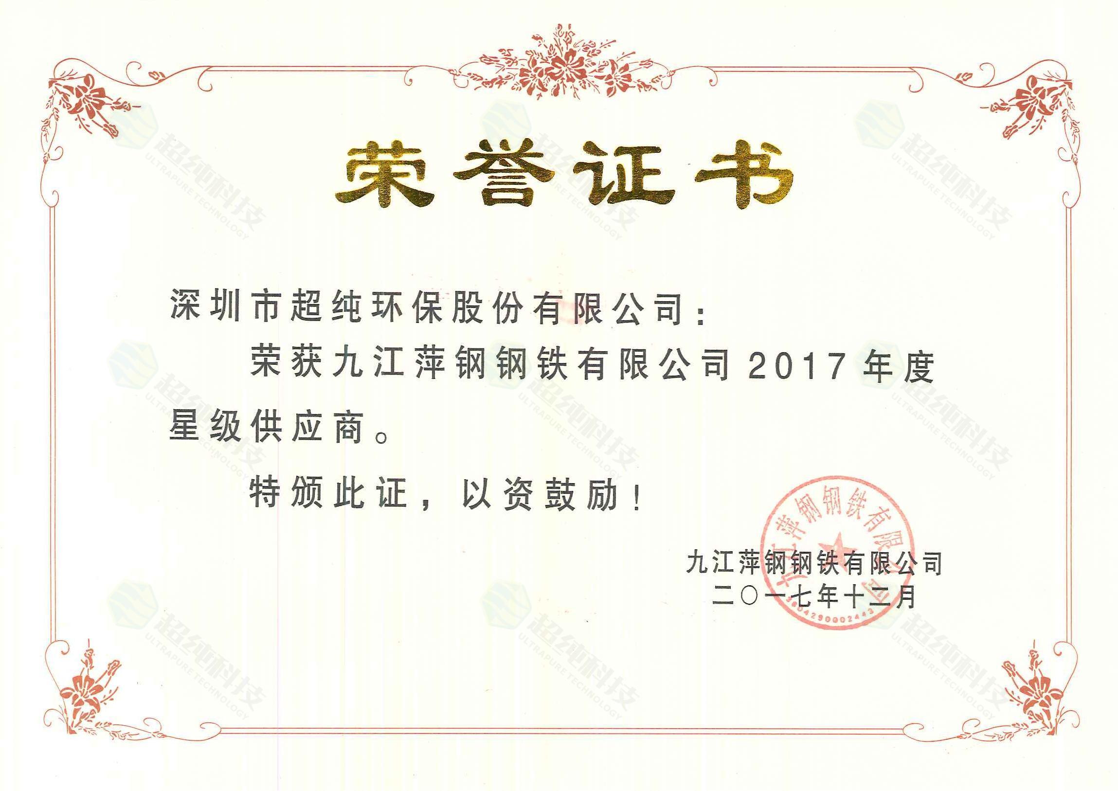 九江萍钢钢铁荣誉证书